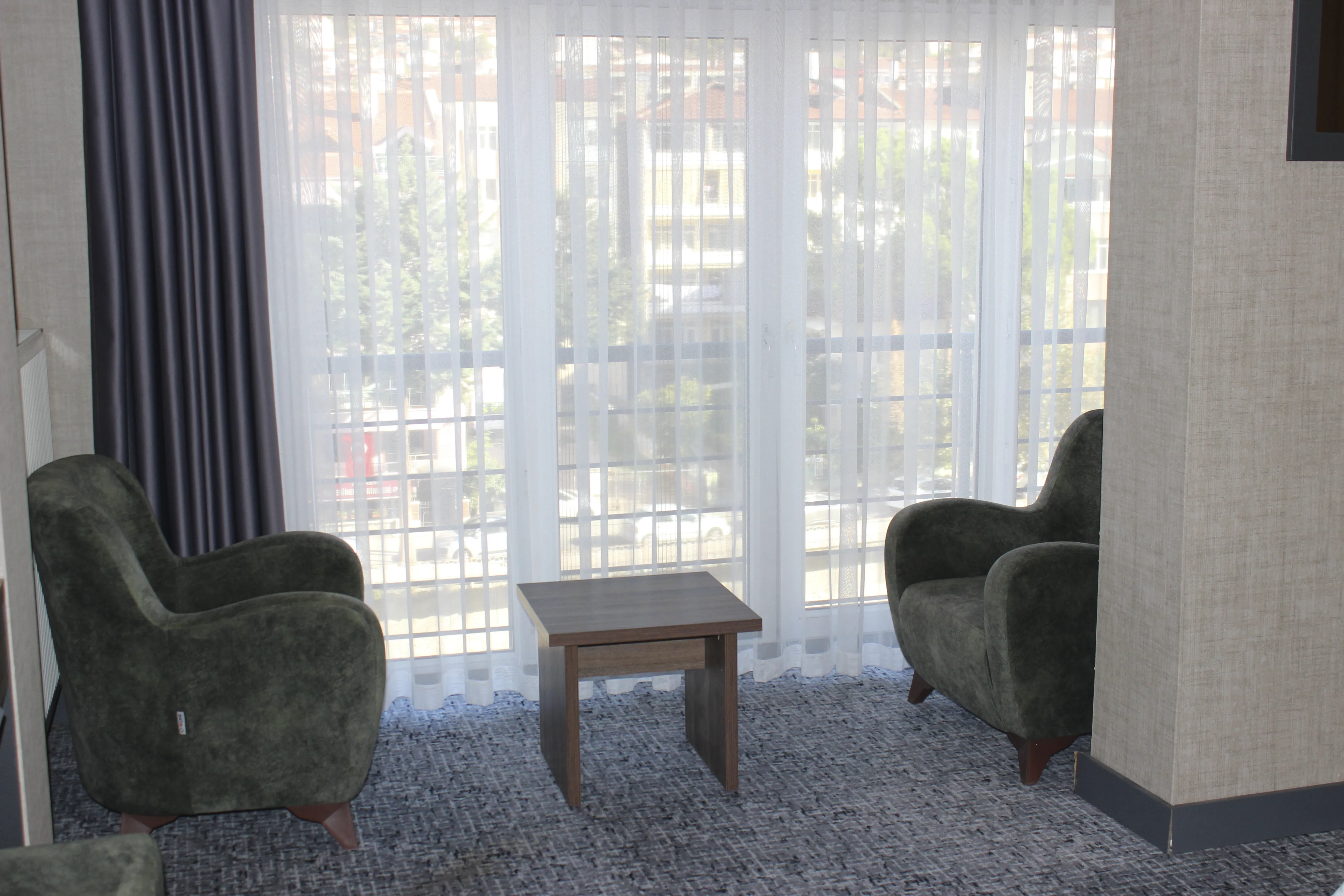 Odanıza açılan balkon, şehir ve doğa manzarasını bir arada sunarak keyifli bir nefes alma alanı yaratır. Sabah kahvenizi yudumlamak veya akşam gün batımını izlemek için mükemmel bir köşe.