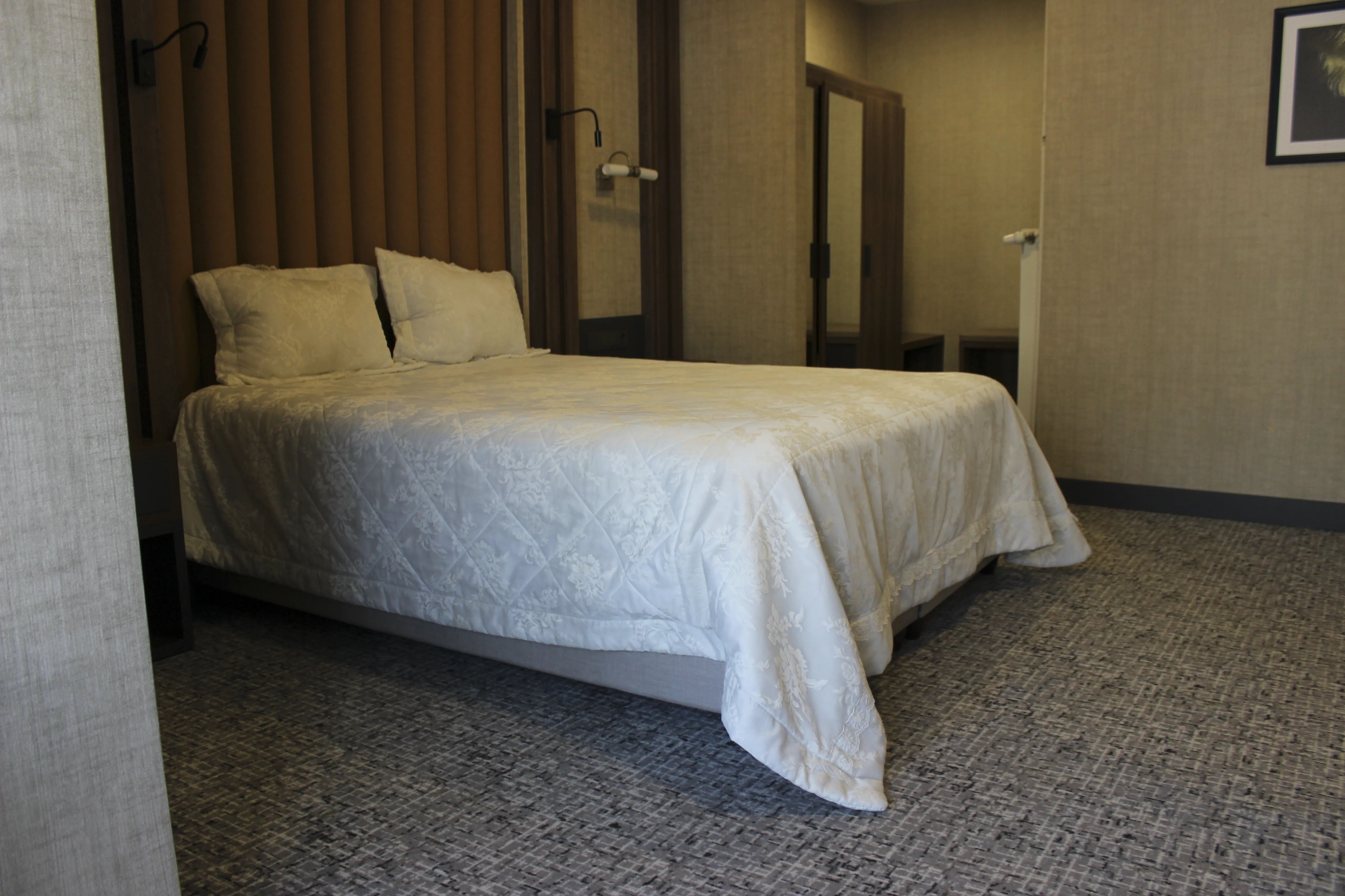 Rahat yatak odası, geniş giyinme alanı ve modern banyosuyla Suit Odamız, günün yorgunluğunu en iyi şekilde atmanızı sağlar. Ferah ve şık banyo alanı, konforlu bir hazırlık ve yenilenme deneyimi sunar.